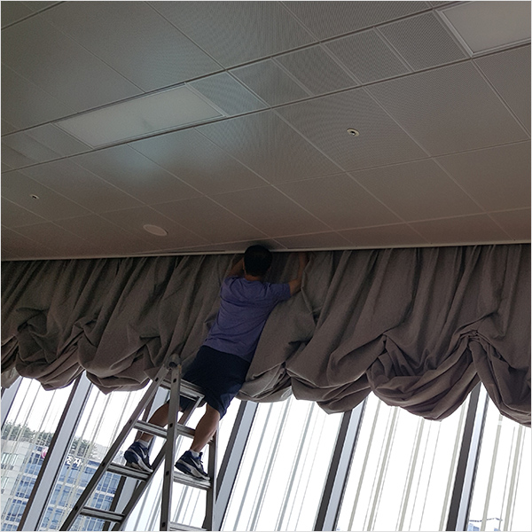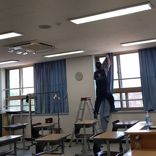 커튼은 평소 청소기로 먼지를 제거하거나 먼지털이로 털어주기만 해도 됩니다. 커튼이 더러워져 세탁하고자 할 땐 커튼을 떼어내기 전에 청소기로 먼지를 충분히 빨아들입니다. 세제는 일반 의류용 세제를 사용, 심하게 더러워졌을 때는 주거용과 의류용 세제를 반씩 섞습니다. 담뱃진이 엉겨 붙었다면 연한 소금물에 담갔다가 일단 물로 소금기를 뺀 다음 세제로 빱니다. 헹궈서 탈수한 후에는 커튼 레일에 그대로 걸어두면 구김도 생기지 않으면서 저절로 마릅니다. 완전히 마르고 난 다음 방수 스프레이를 뿌려두면 얼룩이나 때가 잘 타지 않습니 다. 레이스가 달린 커튼은 그대로 세탁기에 넣고 돌리면 레이스가 달린 부분이 상하기 쉽습니다. 우선 먼지를 잘 털고 서너 군데씩 고무줄로 묶어 세탁기에 넣습니 다. 그러면 서로 엉키지도 않고 꺼내기도 편리하답니다.